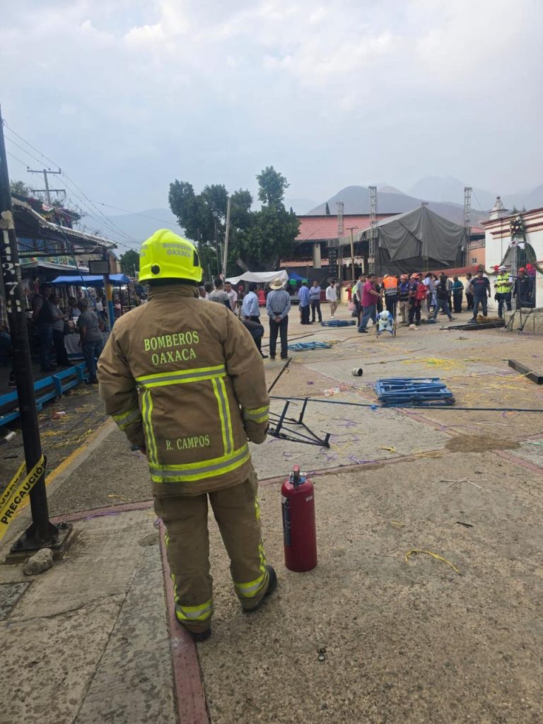 La Secretaría de Seguridad y Protección Ciudadana (SSPC) a través del Heroico Cuerpo de Bomberos de Oaxaca (HCBO), atendió una solicitud de auxilio de San Felipe del Agua, por la caída de un castillo de pirotecnia en la explanada de dicha agencia de Oaxaca de Juárez; que dejó solo daños materiales.