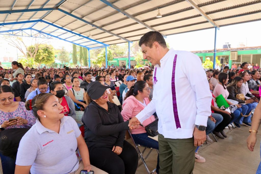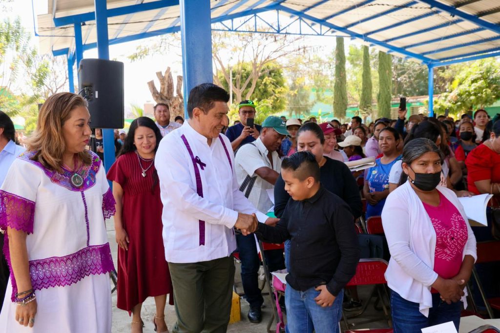 Santa Cruz Xoxocotlán, Oax. 7 marzo de marzo de 2025.- El Gobernador de Oaxaca, Salomón Jara Cruz y el titular de la Secretaría de Educación Pública (SEP), Mario Delgado Carrillo, encabezaron la asamblea para la entrega de 850 tarjetas de la Beca Rita Cetina, en beneficio de igual número de estudiantes de la escuela secundaria general “Genaro Vicente Vásquez”, situada en este municipio.