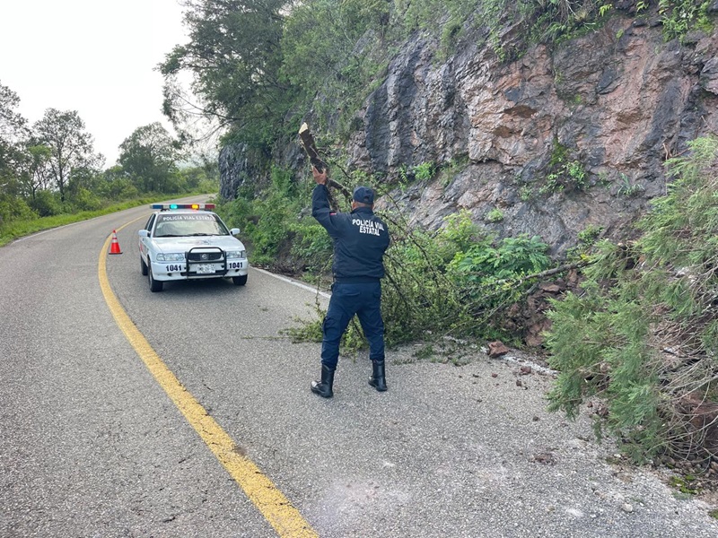 La #Policía #Vial Estatal informa que como parte de los #recorridos de disuasión, seguridad y vigilancia que se implementa en la carretera 131 Oaxaca-Puerto Escondido «Ruta de la Fe», se realizó el retiro de piedras y ramas de un árbol caído que obstruían un carril en el kilómetro 68+300, a la altura de Peña del Chivo perteneciente al distrito de Sola de Vega.