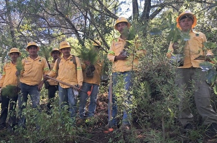 Cabe destacar que previamente, en coordinación con autoridades locales, se ha realizado en áreas cercanas la plantación de mil 500 pinos provenientes de los viveros de Reforesta Oaxaca de la Coesfo.
