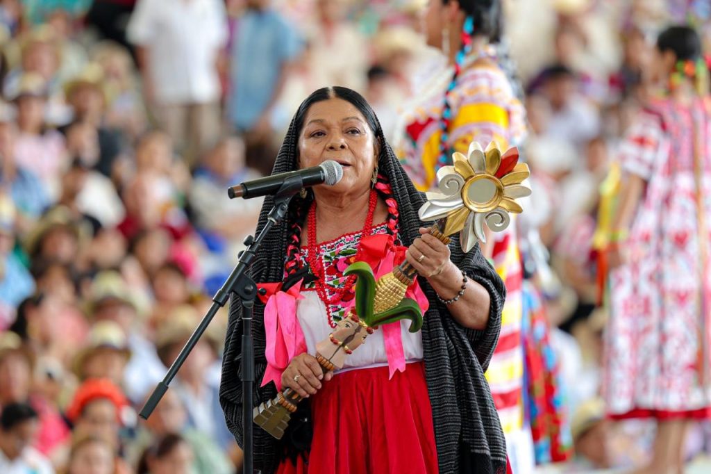 La representante de la Diosa Centéotl 2024, Juana Hernández López dio la bienvenida a nombre de sus hermanas y hermanos de esta tierra, Corazón Cultural de México y que presenció el Gobernador Salomón Jara Cruz y la Presidenta Honoraria del Sistema DIF Oaxaca, Irma Bolaños Quijano, así como Marath Baruch Bolaños López, secretario del Trabajo del Gobierno de México.