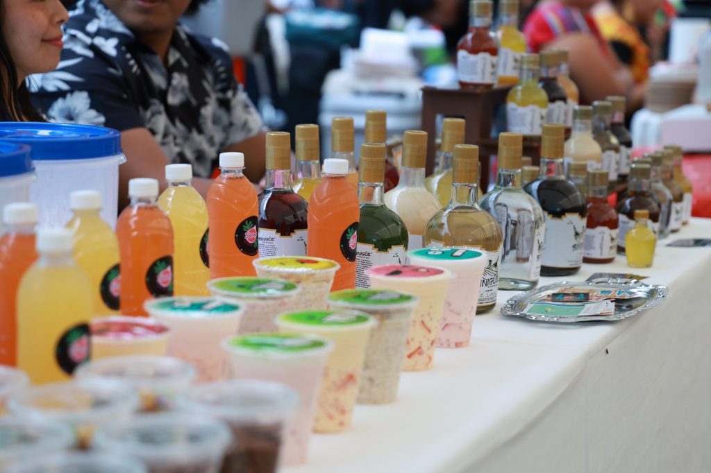 La muestra contó con una amplia variedad de productos que incluyeron textiles artesanales, indumentaria tradicional, joyería, bisutería, nieves oaxaqueñas, café, mezcal, aguas tradicionales, plantas y alimentos típicos como tacos, tamales, tlayudas y garnachas.