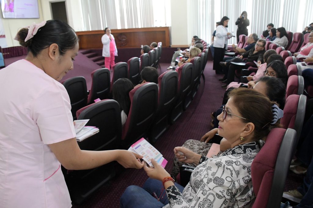 La plática fue impartida por la oncóloga Sandy Ruiz Cruz, quien abordó los métodos de diagnóstico oportuno como la autoexploración, consulta clínica y mastografía, así como las acciones preventivas y factores de riesgo asociados, las etapas clínicas y tratamientos disponibles para cada fase de este padecimiento.