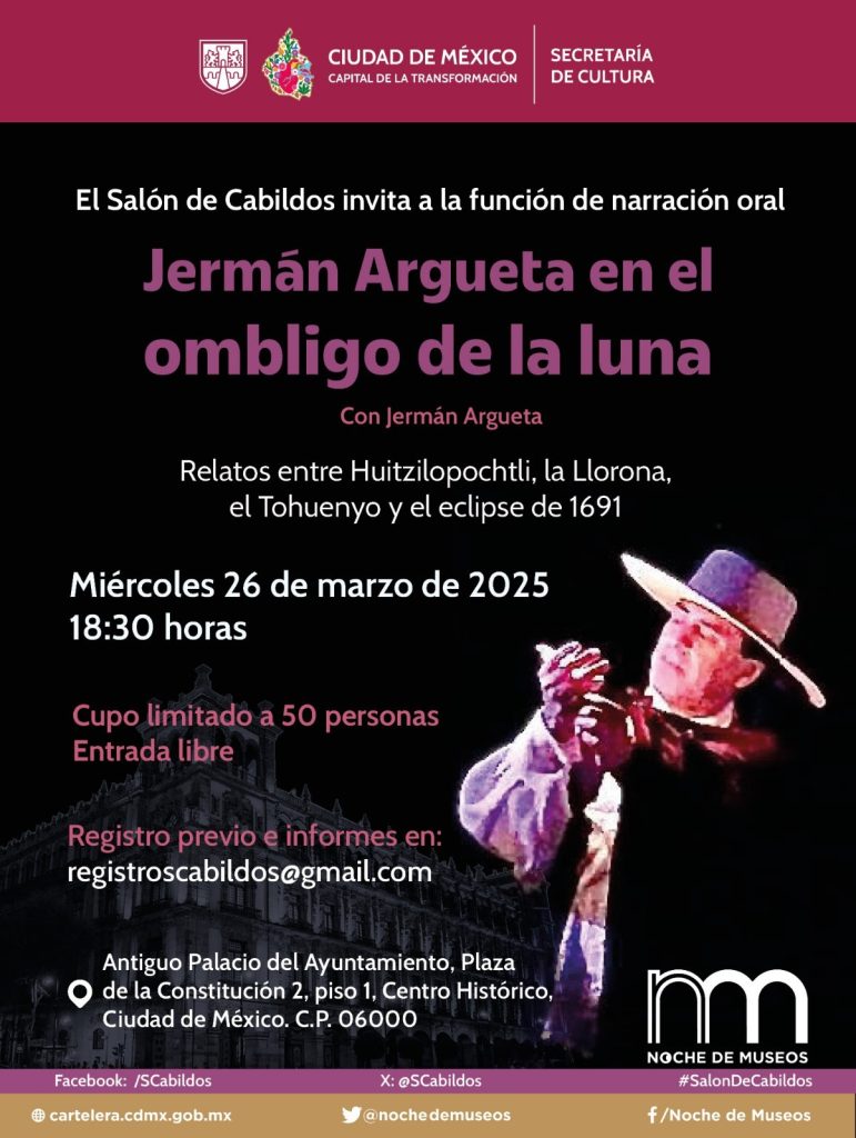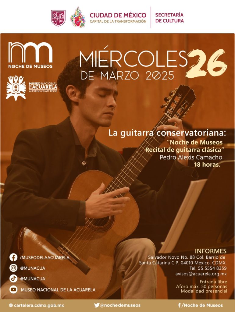Para conocer todas las actividades de la Secretaría de Cultura capitalina se puede consultar la Cartelera de la Ciudad de México (https://cartelera.cdmx.gob.mx/) y las redes sociales de la Secretaría de Cultura: Facebook, Twitter, Instagram y YouTube.