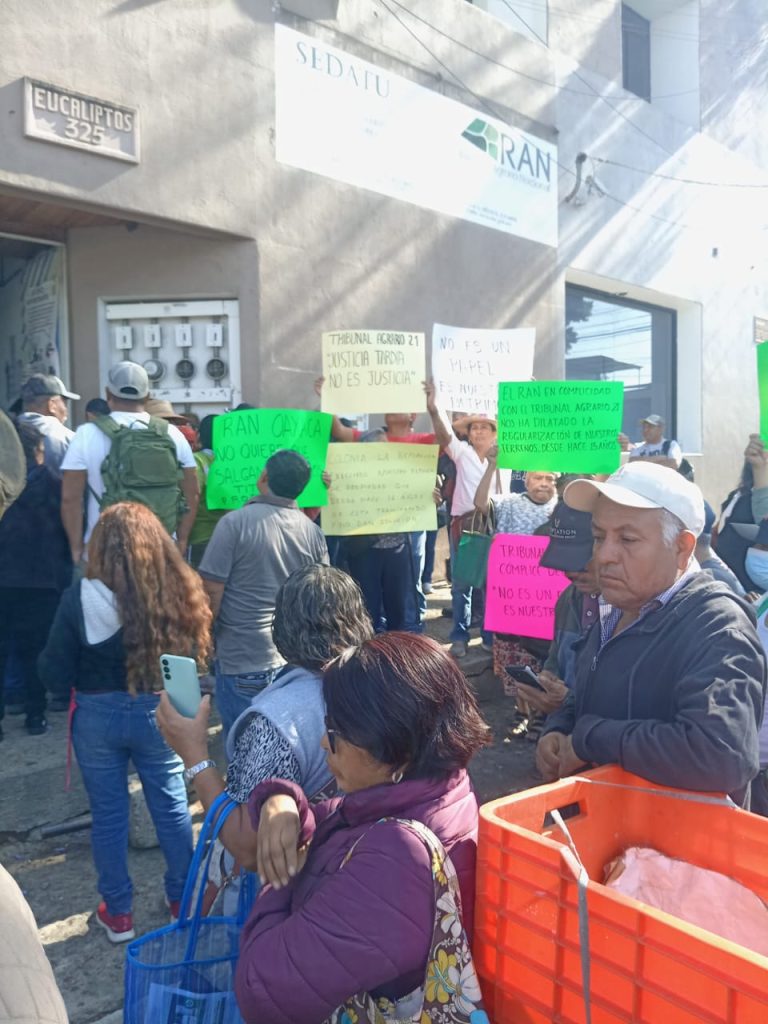Otro de los puntos graves expuestos por la A.C. es la falta de infraestructura adecuada para la atención a los campesinos. Según Segura Cruz, los comuneros y ejidatarios se ven obligados a permanecer “amontonados en la calle” frente a las oficinas del RAN, sin contar con módulos de información, recepción de documentos, ni espacios dignos para adultos mayores o personas con discapacidad.