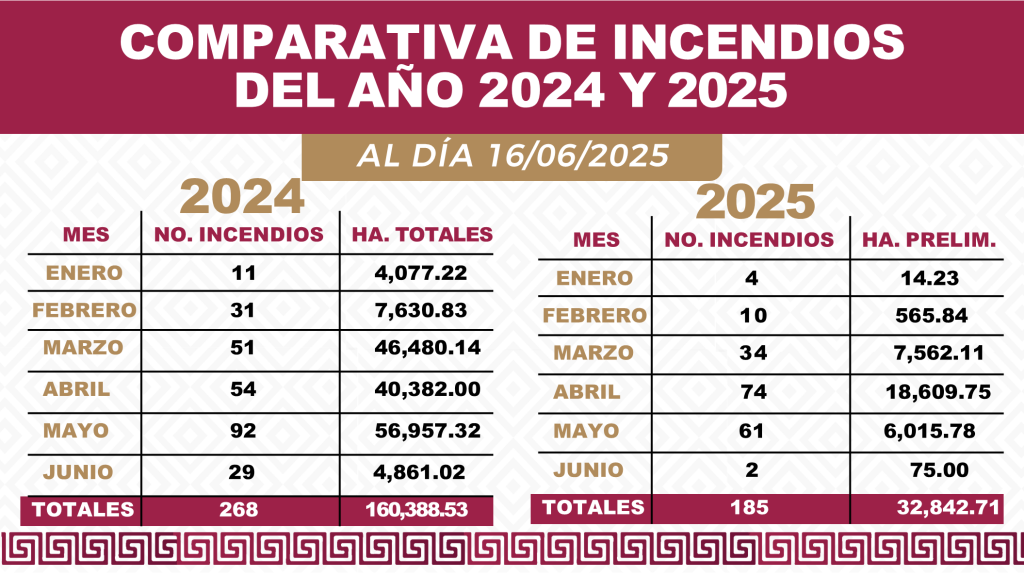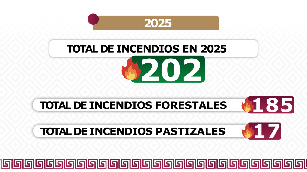 En cuanto a la superficie afectada, se notificaron más de 32 mil hectáreas, cifra sujeta a actualización mediante análisis satelital realizado por la Comisión Nacional para el Conocimiento y Uso de la Biodiversidad (Conabio) y el Sistema de Predicción de Peligro de Incendios Forestales (SPPIF) de la Comisión Nacional Forestal (Conafor).