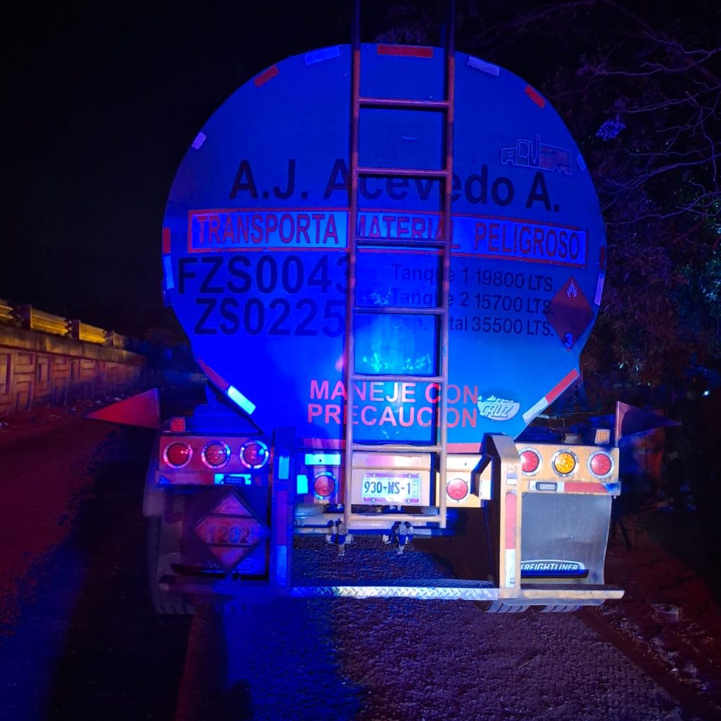 También se aseguró una pipa sobre la carretera federal 190, a un costado de la planta de Petróleos Mexicanos (Pemex), en inmediaciones de Santa María del Tule.