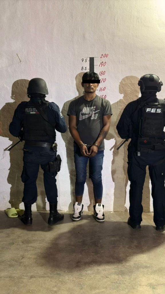 La persona detenida responde a las iniciales A.V.M., de 22 años de edad, originario de Juchitán de Zaragoza, quien conforme a las investigaciones preliminares, se presume que podría estar vinculado a una célula delictiva identificada con el “Comandante Cromo”.