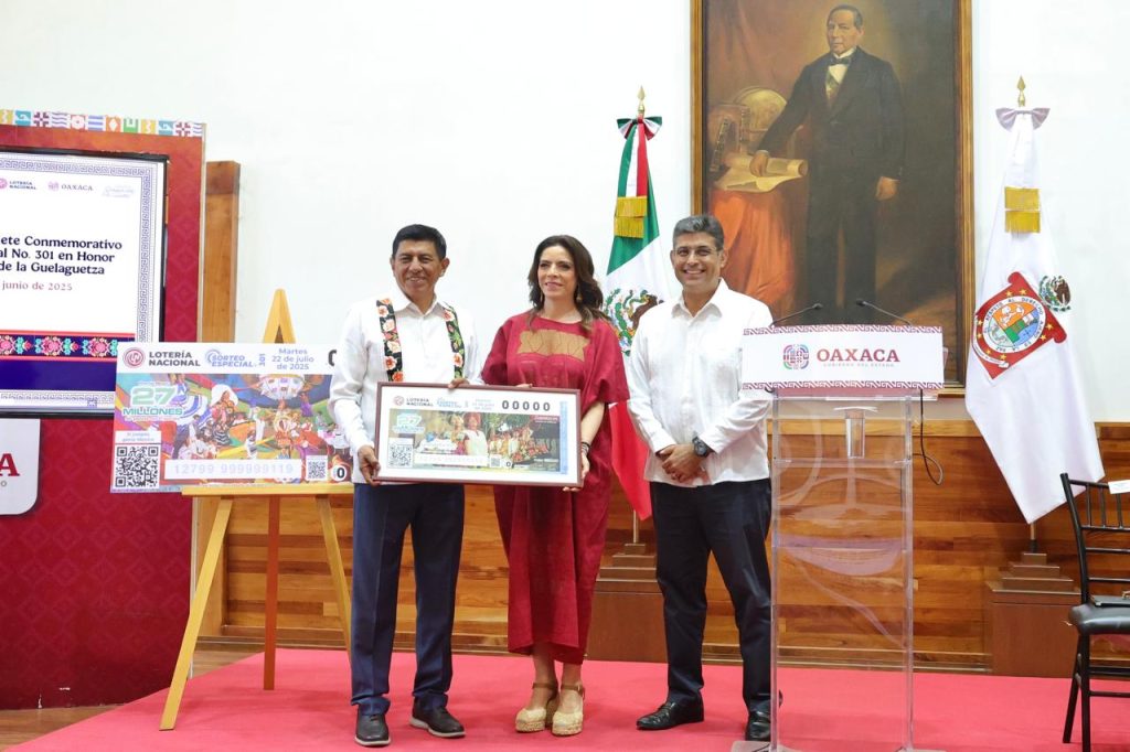 Develan Salomón Jara y Lotería Nacional billete del Sorteo Especial en honor a la Guelaguetza 2025 2