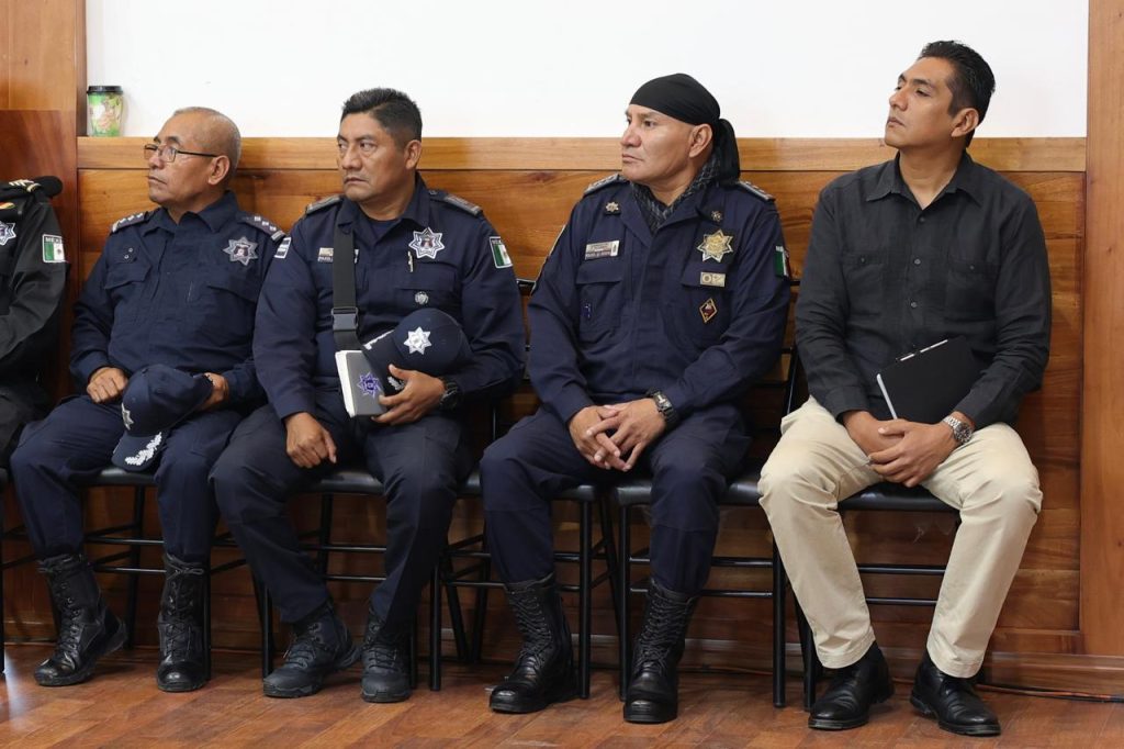 En este acto se hizo entrega y firma de documentos de afiliación social a las y los policías Esperanza Julia Vásquez Robles; Perfecto Pacheco Vásquez; Venancio Aparicio Hernández; Melquiades Rojas Bautista; Reyna Maura Elorza Barrita y Hermelinda Zárate Morales