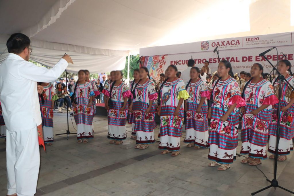 En este marco, con el acompañamiento de la banda de música de Santiago Xiacuí, y de la Banda Femenil Regional Mujeres del Viento Florido, de Santa María Tlahuitoltepec, estudiantes de diferentes planteles interpretaron el Himno Nacional Mexicano en lenguas indígenas como el amuzgo, mazateco, zapoteco, mixteco, mixe y tacuate.