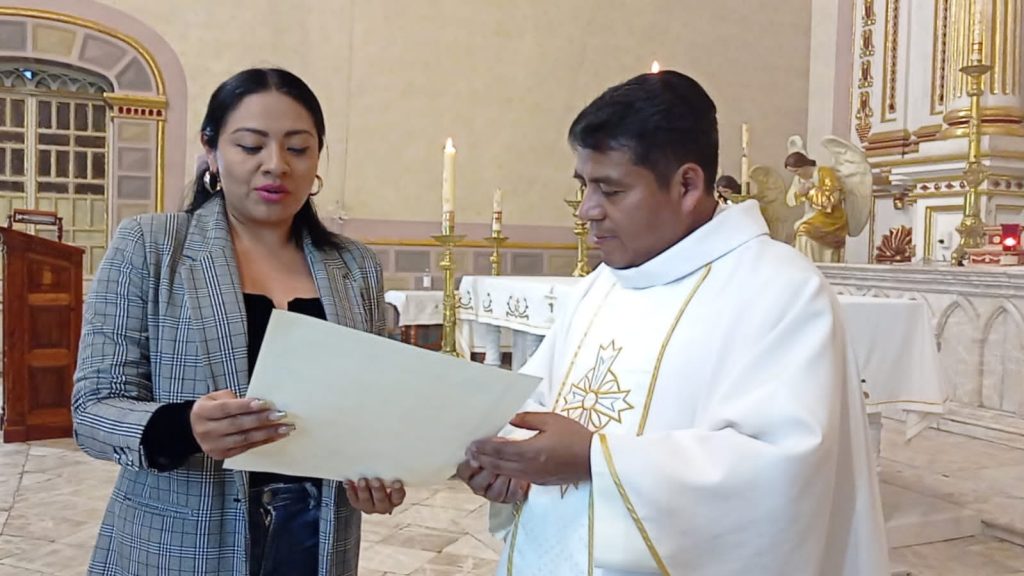 Al finalizar recibe de manos de Xadanii De La Fuerte, en representación de La Tlaxiaqueña, un HONORIS CAUSA por su loable servicio para la comunidad católica y público en general de Tlaxiaco y sus alrededores, el cuál textualmente dice lo siguiente: