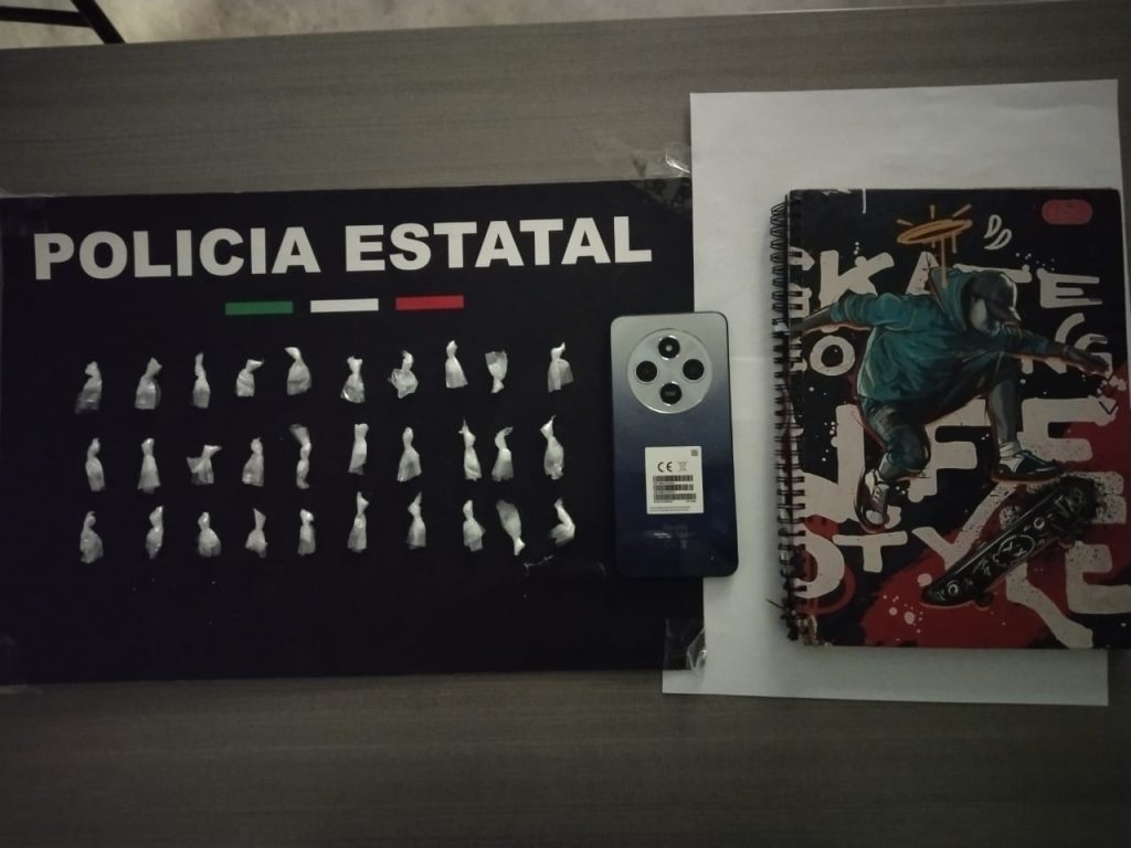 A este sujeto identificado como S.V.R., de 31 años de edad, además de la presunta droga, se le incautó una libreta con registros de posibles compradores y un teléfono celular que portaba en ese momento.