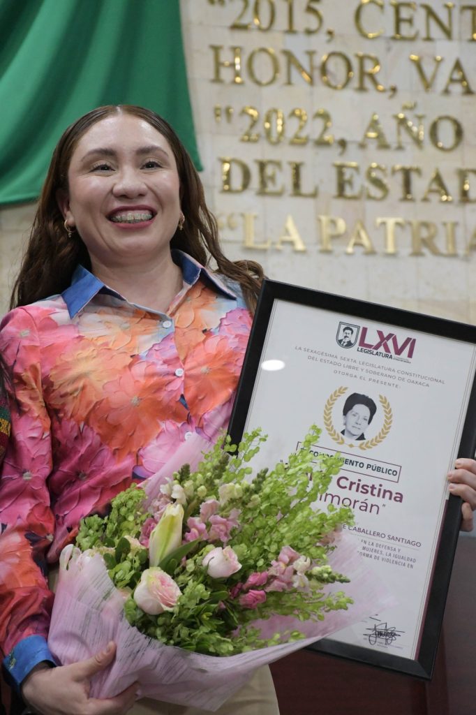 Entrega Congreso de Oaxaca Reconocimiento Público “María Cristina Salmorán” a Xhunashi Caballero—