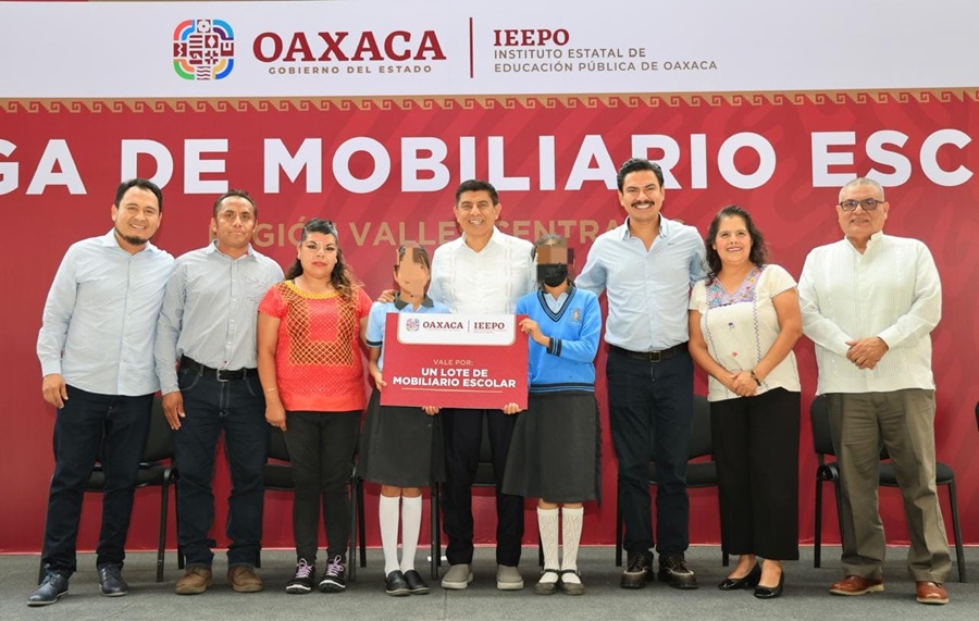 En un acto histórico, el Gobierno de Oaxaca ha dotado de mobiliario nuevo a 11 mil 630 escuelas ubicadas en las ocho regiones de la entidad, de las cuales, en más de 6 mil 200, el Gobernador ha autorizado directamente el material, en sus visitas a las comunidades.
