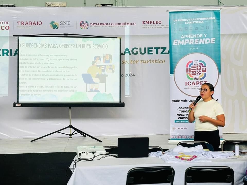Oaxaca de Juárez, Oax. 28 de junio de 2024.- Con la participación de 40 empresas del sector de servicios, turismo y comercio, se realizó la “#Feria del #Empelo #Guelaguetza 2024. Capacitando y Fortaleciendo al Sector Turístico”, a fin de acercar a las personas más de 390 ofertas laborales.