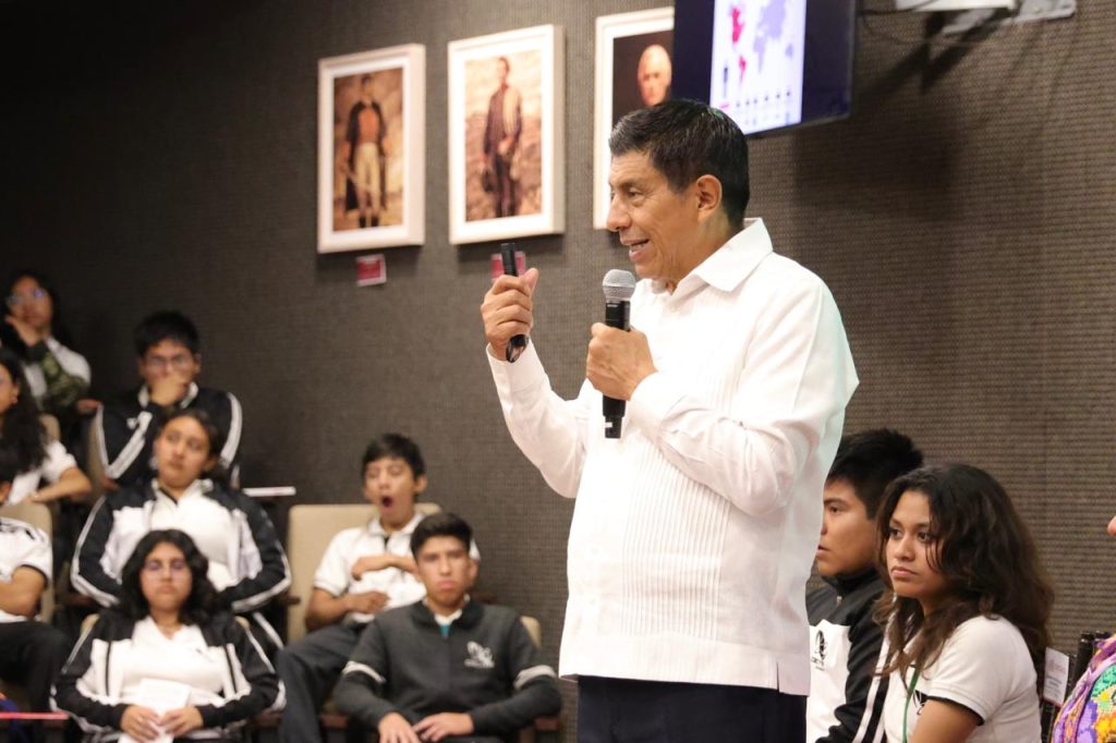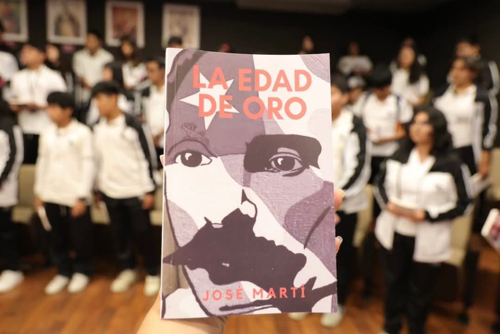 - El Gobernador Salomón Jara Cruz lee en voz alta con estudiantes de nivel medio superior, del libro el libro «La edad de oro» del autor cubano José Martí