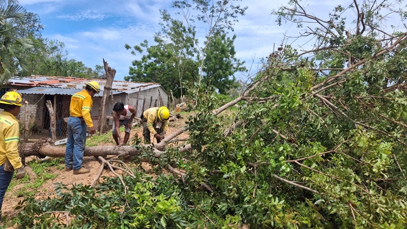 Entre las acciones destacan el troceo, derrame, acomodo y poda de árboles dañados, así como la limpieza de zonas que representan riesgo para la población.