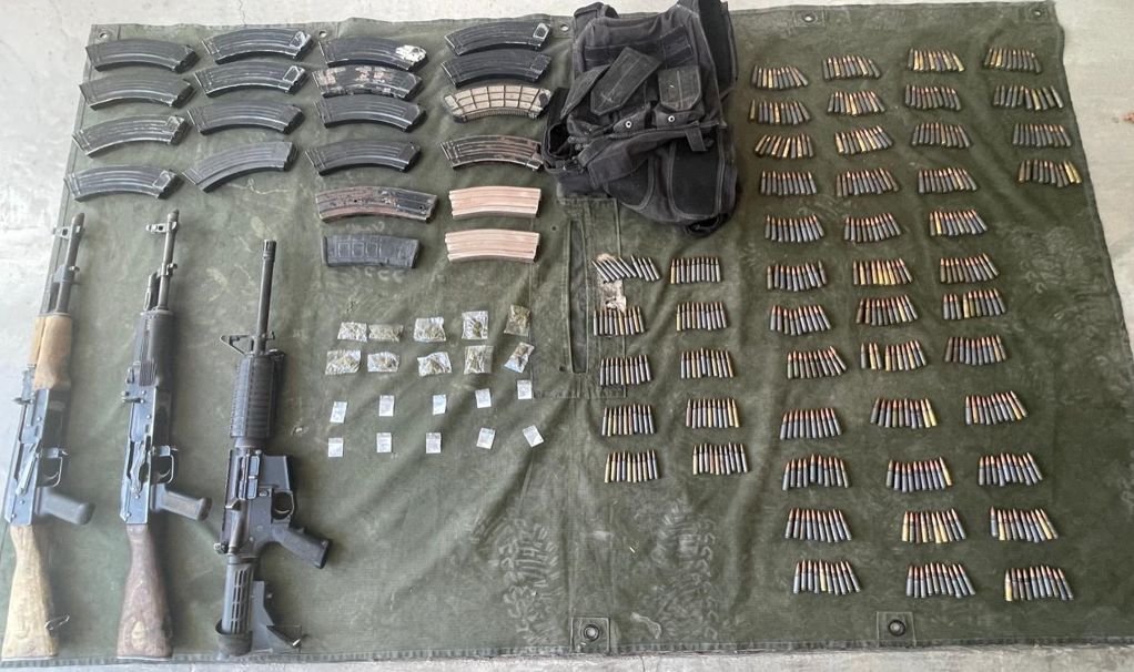 En Caborca, se aseguraron tres armas largas, 20 cargadores, 500 cartuchos, 10 dosis de metanfetamina y 10 dosis de marihuana.
