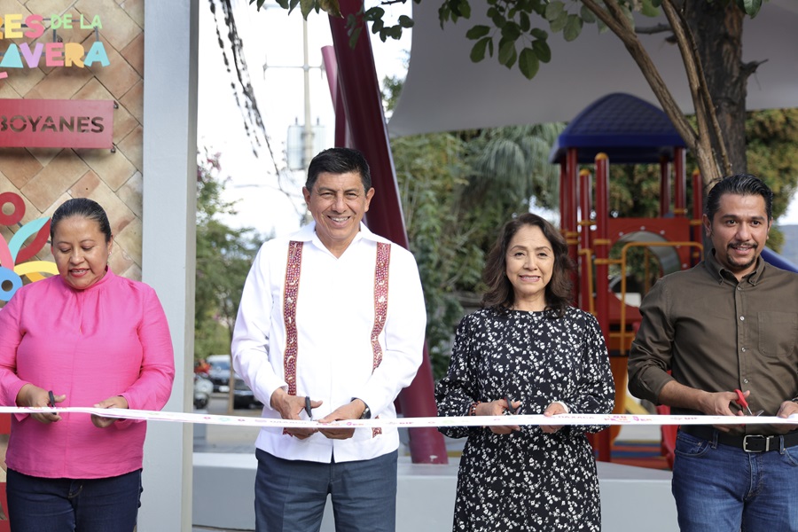 El Gobernador Salomón Jara Cruz y la Presidenta Honoraria del Sistema Estatal para el Desarrollo Integral de la Familia (DIF) Oaxaca, Irma Bolaños Quijano, inauguraron de manera simbólica los parques: Violeta, en la Unidad Habitacional Flores Magón; Framboyanes, en la agencia Cinco Señores y Jacaranda, en Candiani.