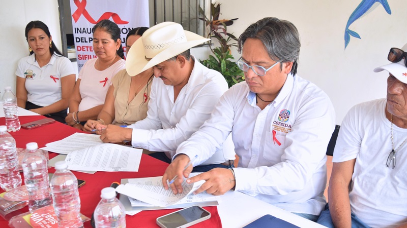 San Pedro Pochutla, Oax. 4 de julio de 2025.- El Consejo Estatal para la Prevención y Control del Sida (Coesida) instaló un nuevo punto fijo de detección del Virus de Inmunodeficiencia Humana (VIH), sífilis y hepatitis C en Puerto Ángel, y firmó un convenio de colaboración con autoridades de esta agencia municipal.