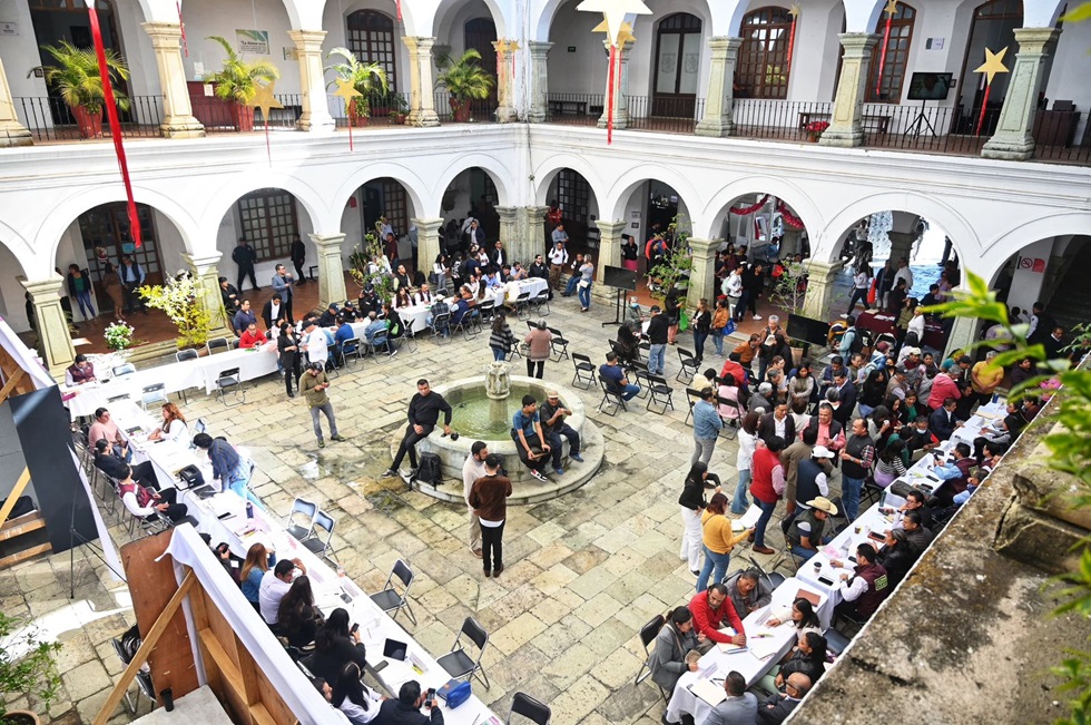 Oaxaca de Juárez, Oax. 8 de enero de 2025.-Con el objetivo de brindar información a las personas usuarias sobre el programa Canje de Placas 2025, la Secretaría de Movilidad (Semovi) instaló un módulo de atención al interior del Palacio Municipal de Oaxaca de Juárez.