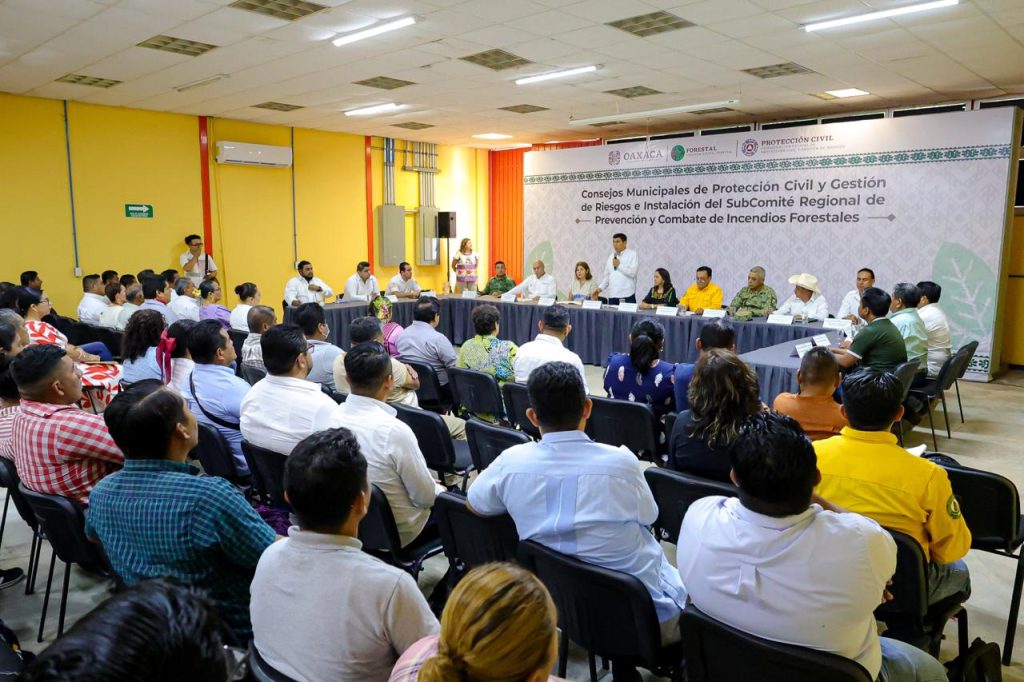 Juchitán de Zaragoza, Oax. 22 de marzo de 2024.- Con la presencia de autoridades federales, estatales y municipales se instaló el Subcomité Regional de Prevención y Combate de Incendios Forestales, así como los Consejos Municipales de Protección Civil y Gestión de Riegos de la región del Istmo de Tehuantepec.