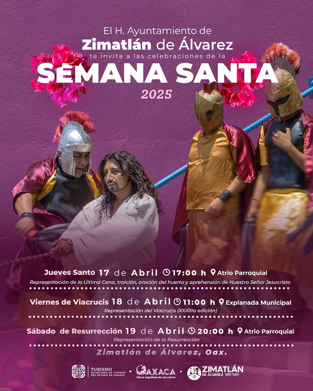 Oaxaca de Juárez, Oax. 1 de abril de 2025.- La Secretaría de Turismo (Sectur) Oaxaca invita a visitantes locales, nacionales e internacionales a vivir las tradiciones de Semana Santa del 17 al 19 de abril en el municipio de Zimatlán de Álvarez, perteneciente a la región Valles Centrales.