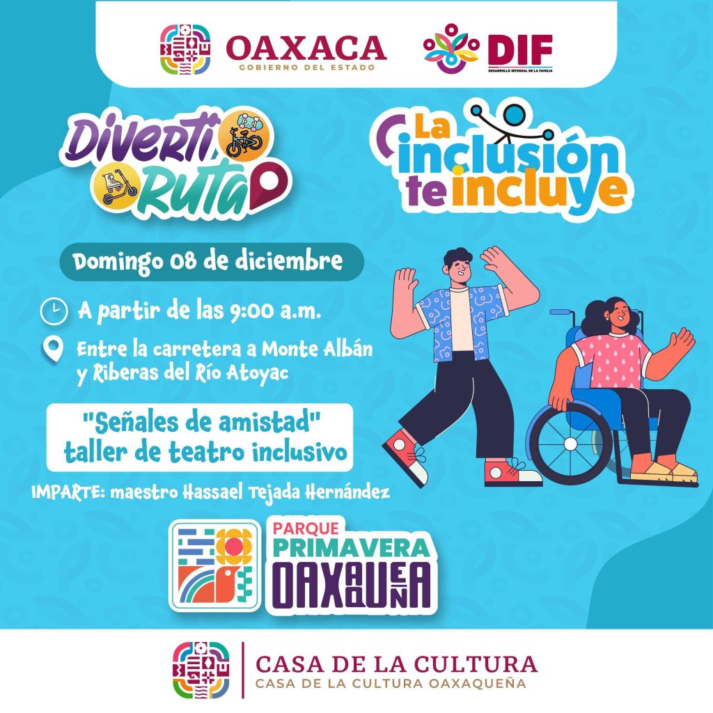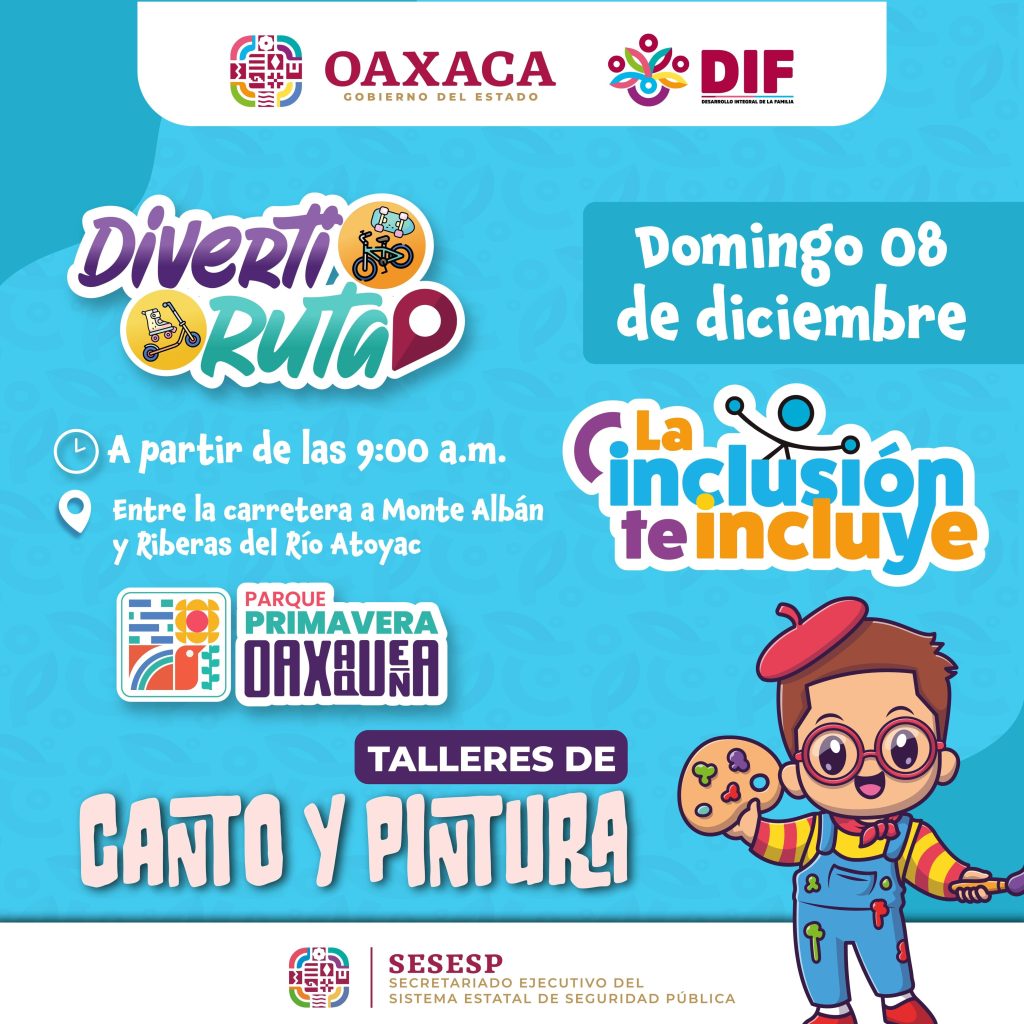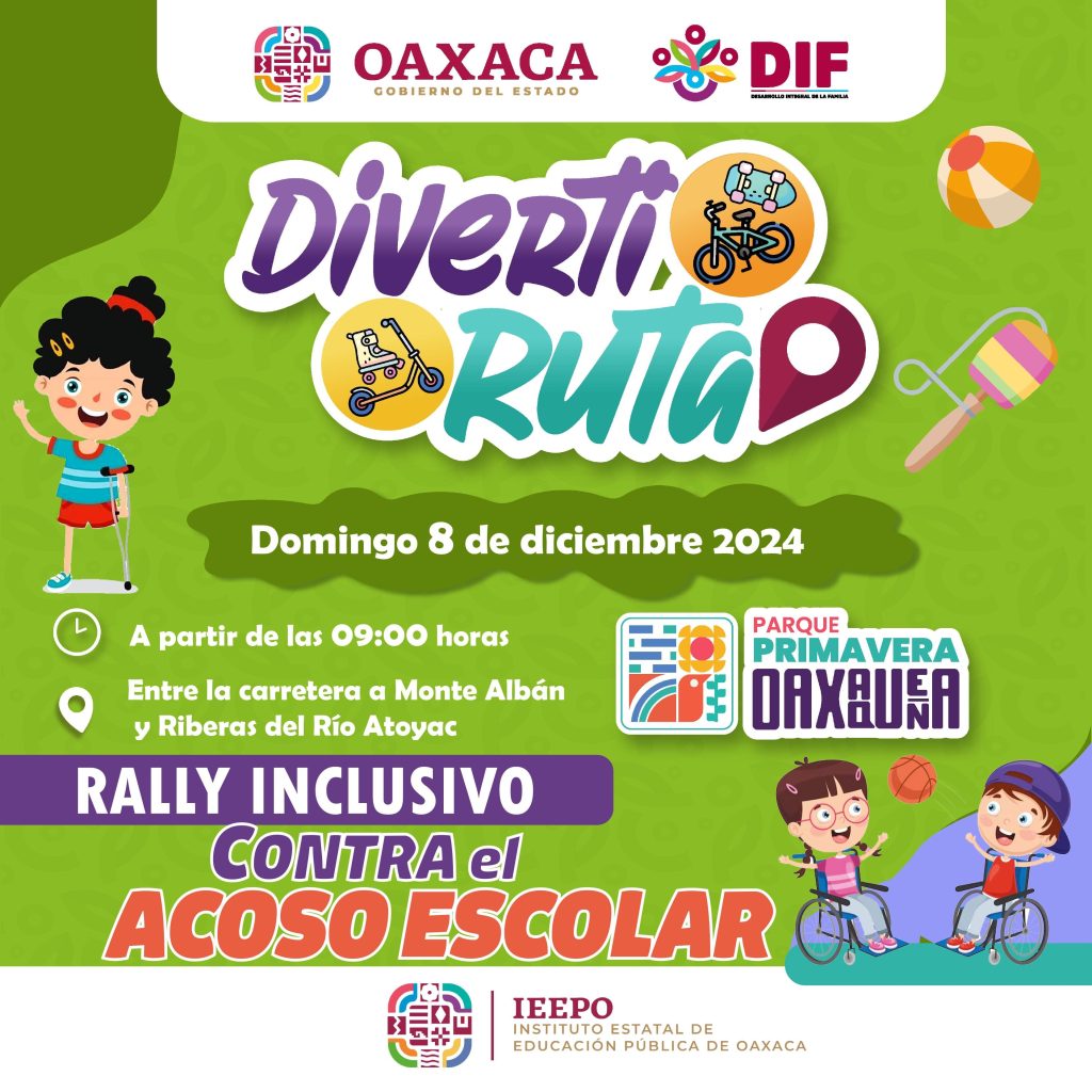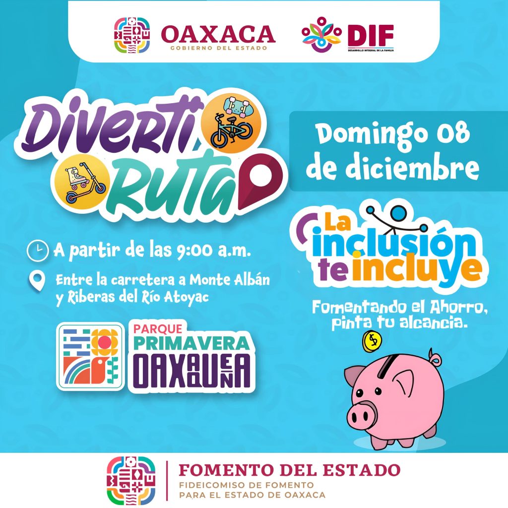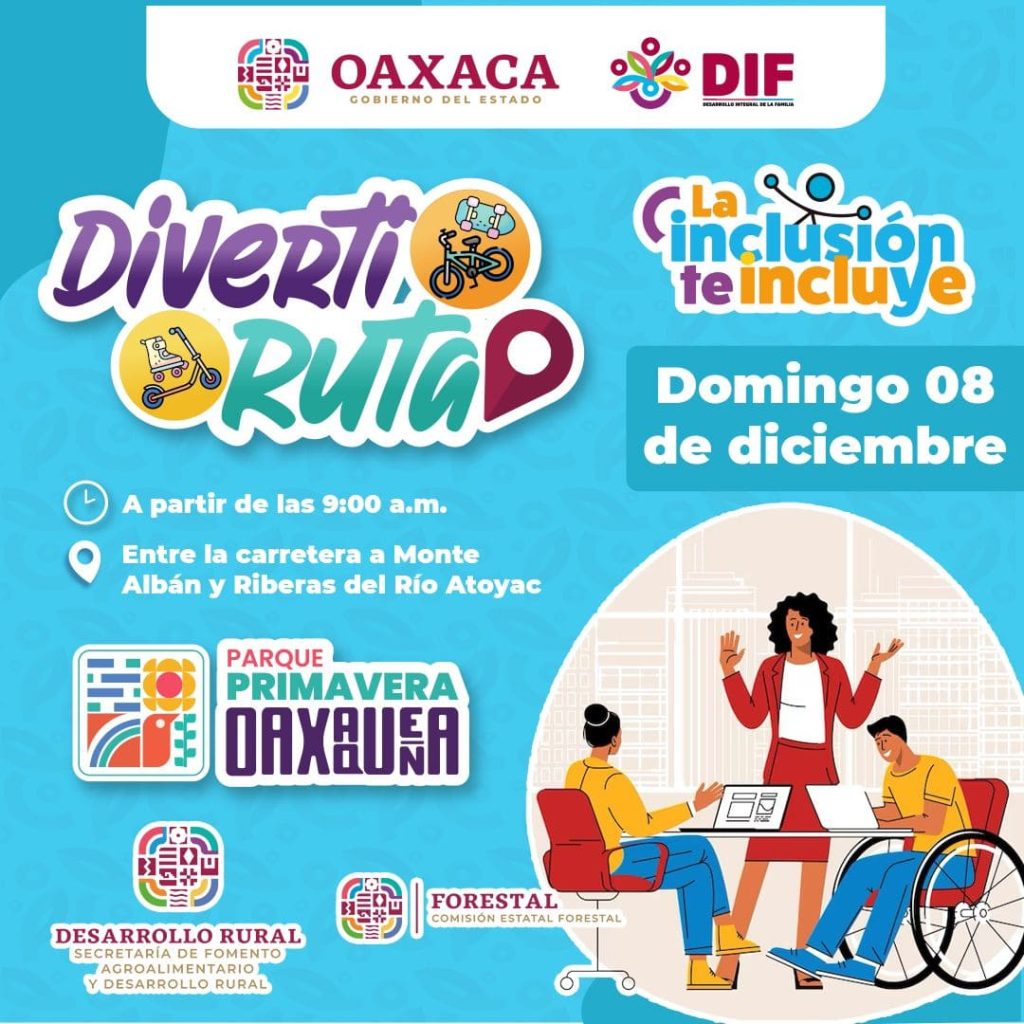 Oaxaca de Juárez, Oax. 6 de diciembre de 2024.- En el marco del Día Internacional de las Personas con Discapacidad, conmemorado cada 3 de diciembre, la vigésima séptima edición de la Diverti Ruta ofrecerá diversión y aprendizaje a la niñez y adolescencia con actividades recreativas, culturales y deportivas inclusivas este domingo 8 del presente mes en las instalaciones del Parque Primavera Oaxaqueña Cho Ndobá.