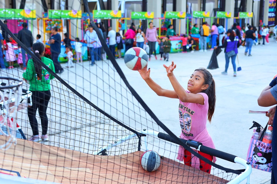 A partir de las 17:00 horas, la emoción embarga a la niñez que en compañía de sus seres queridos hacen fila para recibir el pasaporte mágico, ya que al jugar canicas, básquetbol, futbolitos, entre otras atracciones, reciben sellos y al acumular ocho obtienen un juguete nuevo, con el cual interactúan libremente y ejercen su derecho a la recreación, esparcimiento y descanso.