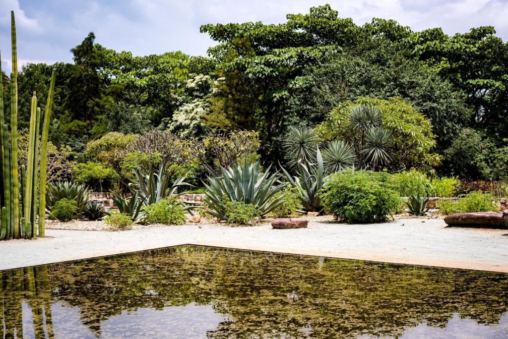 La construcción convive con el Jardín Etnobotánico, creado para la educación ambiental y la conservación de la flora y fauna endémica; a través del cuidado de 2 mil especies de plantas y árboles nativos.