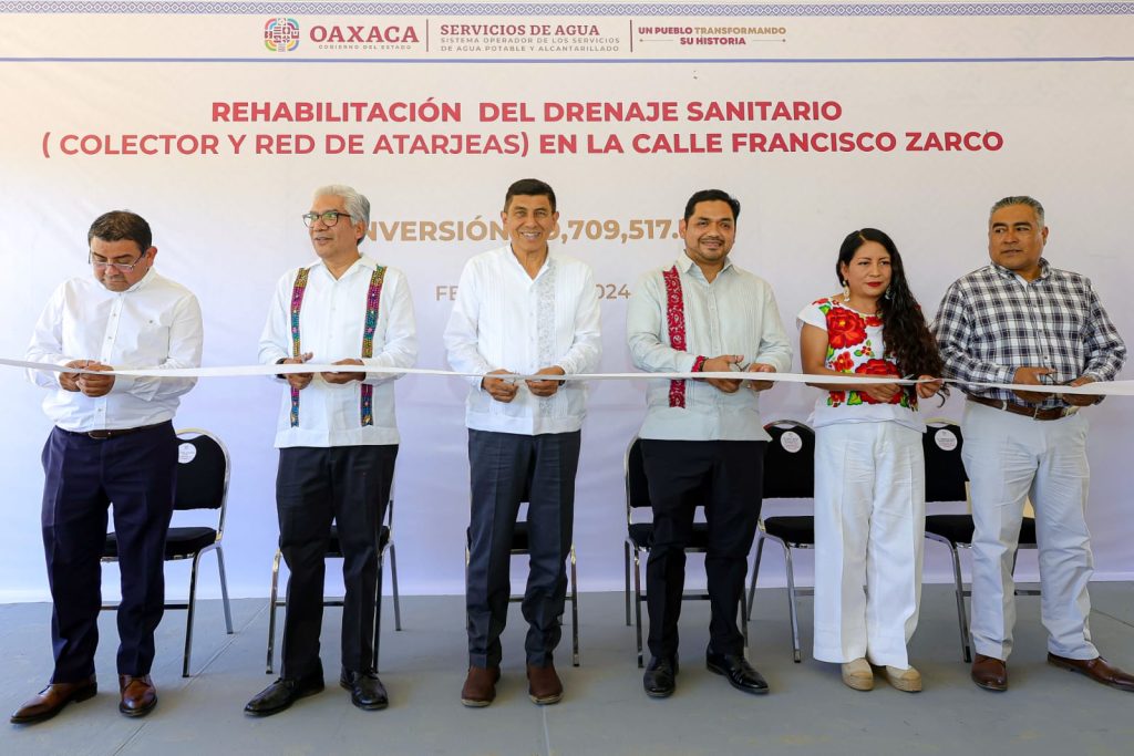 En este contexto, el Gobernador Salomón Jara Cruz inauguró una obra de construcción de la red de alcantarillado, y otra de rehabilitación de drenaje sanitario (colector y atarjeas) por un monto de 9 millones 709 mil pesos, ambos sobre la calle Francisco Zarco, tramo Eulalio Gutiérrez y Mártires de Tacubaya de la colonia Reforma Agraria en Santa Cruz Xoxocotlán.