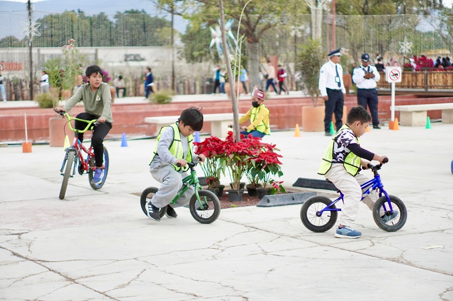A partir de las 16:00 horas, cada espacio de este parque recuperado para el pueblo oaxaqueño, se distinguió por las sonrisas y gritos de felicidad que contagiaron las niñas y niños que disfrutaban del brincolín, los circuitos viales o los futbolitos, entre otras actividades deportivas.