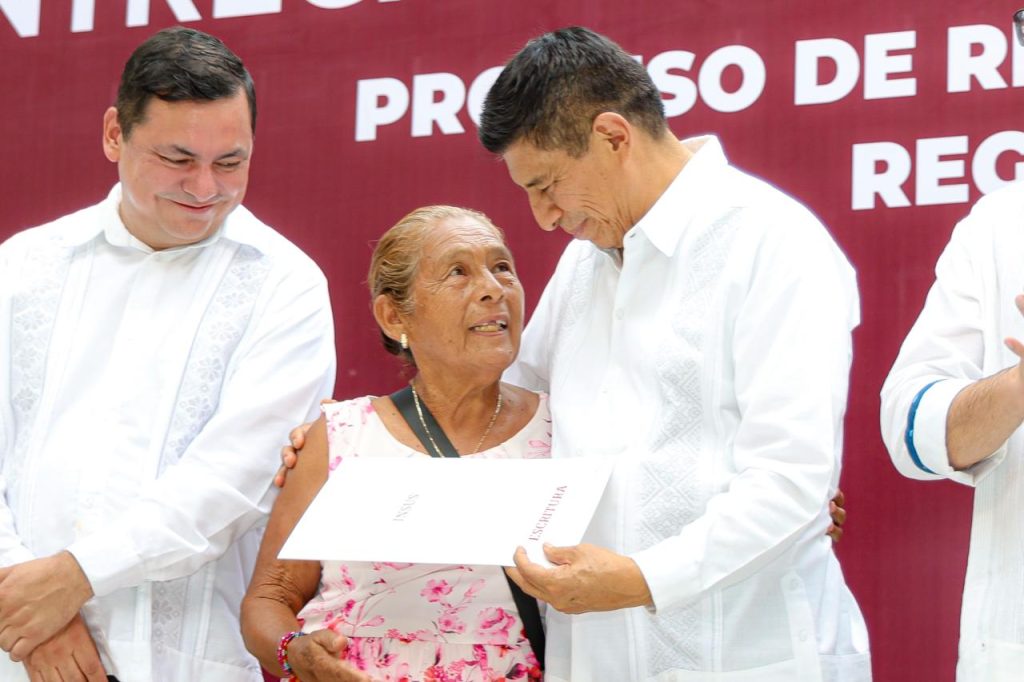 Agradeció una vez más al Presidente Andrés Manuel y al Gobernador Salomón Jara Cruz porque les cambió la vida: “hasta se me hace un nudo en la garganta porque por cuestiones económicas no habíamos tenido la oportunidad de tener nuestro terreno, estoy muy agradecida con Dios y con ellos”, culminó.