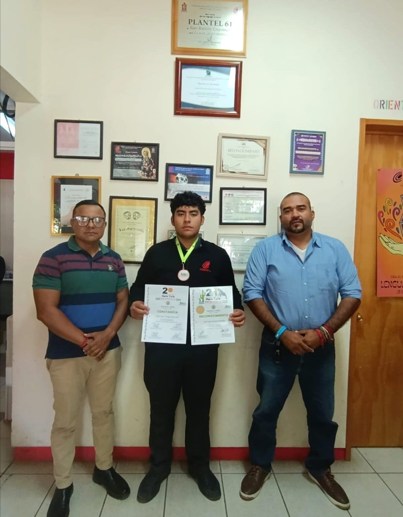 Del plantel 61 San Bartolo, el alumno Julio César Vázquez Gonsalez logró un meritorio tercer lugar en la categoría del Nivel III, consolidando la presencia del Cobao en esta competencia nacional.