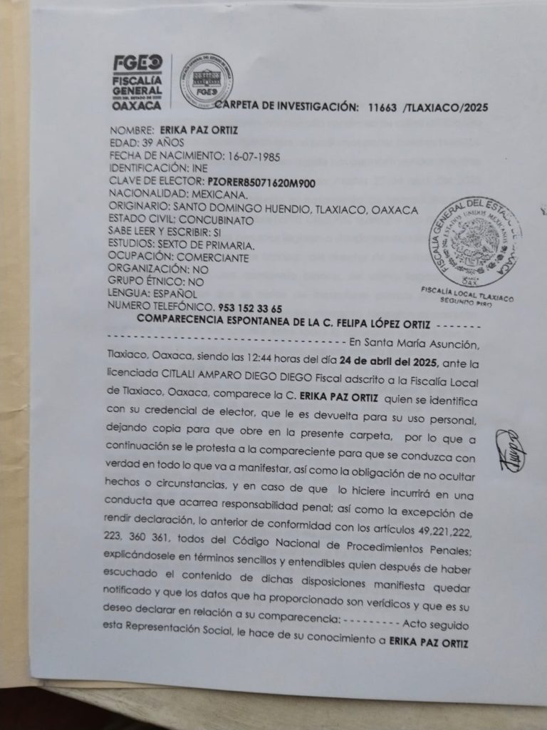 Horas después, alrededor de las 16:00 horas, dos sujetos encapuchados llegaron al domicilio de la pareja, ubicado en la carretera a Chalcatongo, y los agredieron físicamente sin mediar palabra. Erika, una mujer con tratamiento de diálisis, resultó lesionada y fue trasladada a una clínica particular por vecinos, mientras que Ricardo fue detenido por la Policía Municipal, que arribó al lugar minutos después.