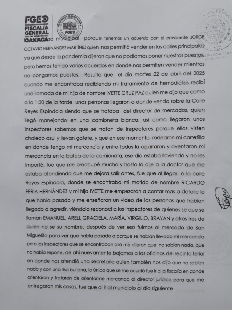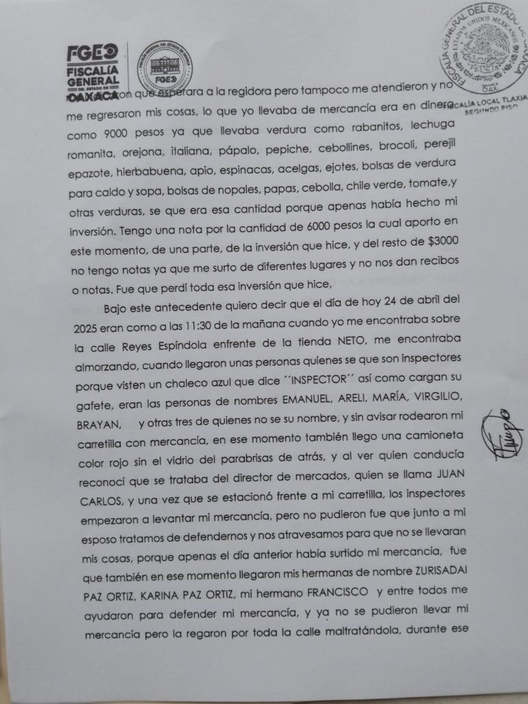Tlaxiaco, Oaxaca. 25 de abril de 2025.- Un operativo municipal contra vendedores ambulantes derivó en agresiones físicas, un detenido y denuncias por tentativa de homicidio, lesiones y allanamiento de morada, en medio de reclamos por presunto abuso de autoridad.