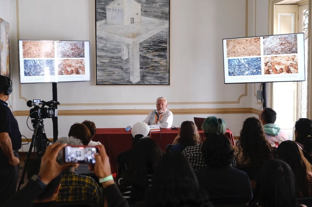 Por la mañana, en la Casa Emma Godoy, el Doctor Ubaldo López García presentó el conversatorio Códices y lienzos indígenas oaxaqueños, que abrió un diálogo con jóvenes asistentes interesados en el pasado tangible de las culturas del estado de Oaxaca.
