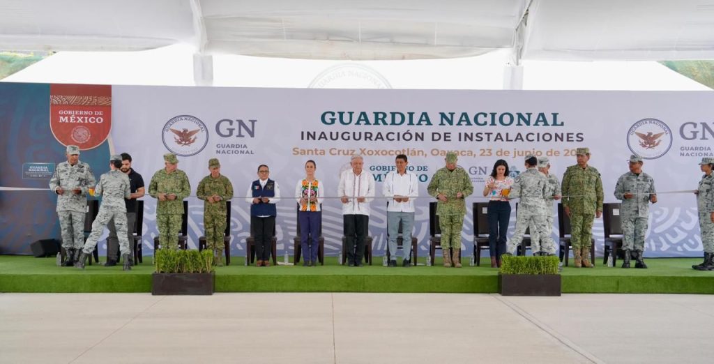 Al asistir a la inauguración de las nuevas instalaciones de la Guardia Nacional en el estado y en la que estuvo presente la virtual Presidenta electa Claudia Sheinbaum Pardo, el Mandatario estatal felicitó y agradeció a nombre del pueblo de Oaxaca el trabajo y apoyo de la institución policial y de las Fuerzas Armadas para fortalecer las acciones a favor de la paz social, atención a emergencias y desastres en la entidad y el país.