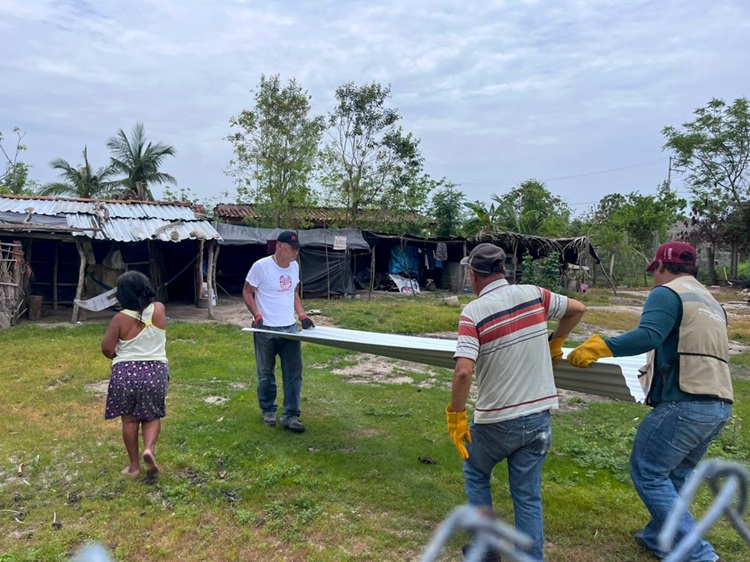 Como parte de estas acciones, se llevó a cabo una jornada de trabajo en las localidades de El Ciruelo y El Tamarindo, pertenecientes al municipio de Santiago Pinotepa Nacional, donde las brigadas realizaron el censo de personas damnificadas y la entrega de paquetes de láminas a familias cuyas viviendas fueron severamente afectadas por las lluvias y vientos intensos.