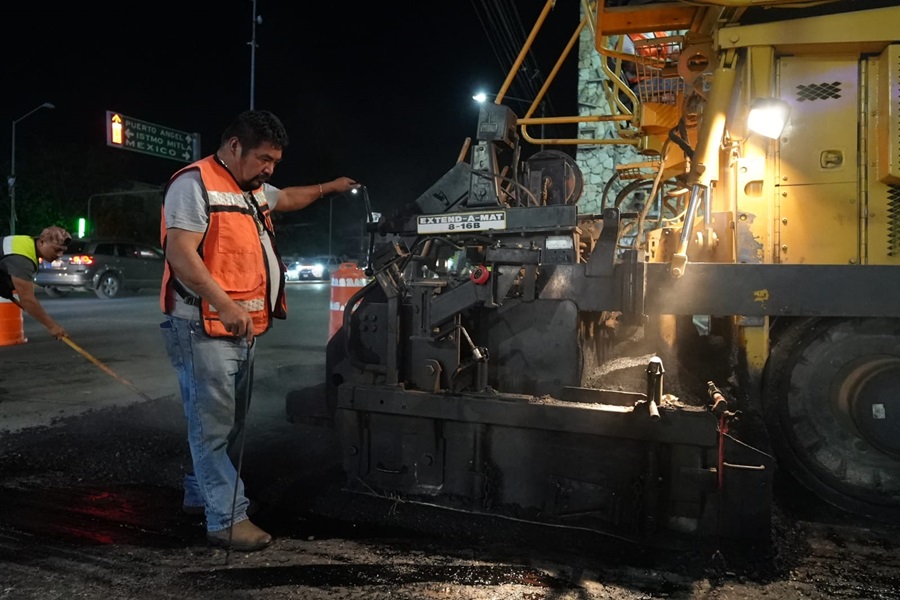 - Los trabajos de reencarpetamiento en esta vialidad de la capital del estado se realizan en horarios diurno y nocturno para tener un avance constante y terminar en el menor tiempo posible