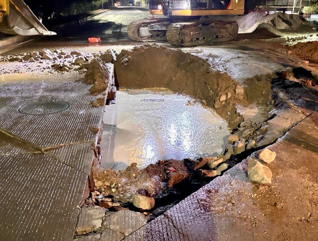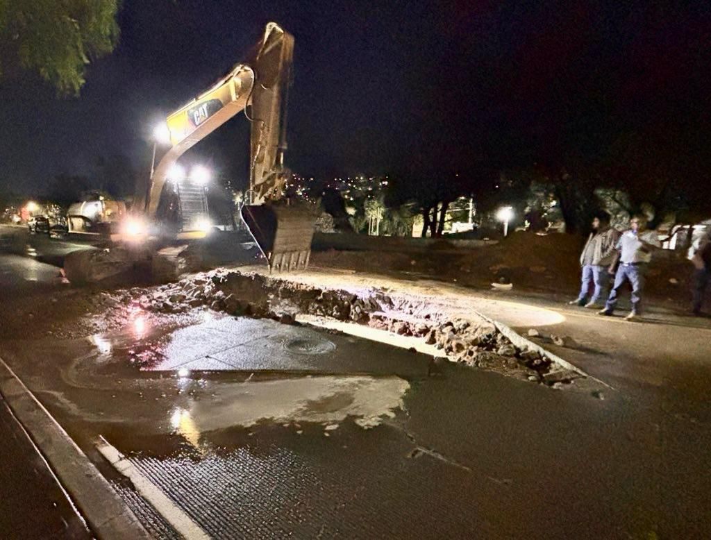 La dependencia explicó que derivado de la tormenta atípica registrada el pasado domingo 20 de abril, se presentó un reblandecimiento de la tierra que, aunado al tránsito constante de vehículos pesados en la zona, agravó las condiciones del suelo, lo que generó daños mayores a la red de agua potable que cruza por esta vialidad.