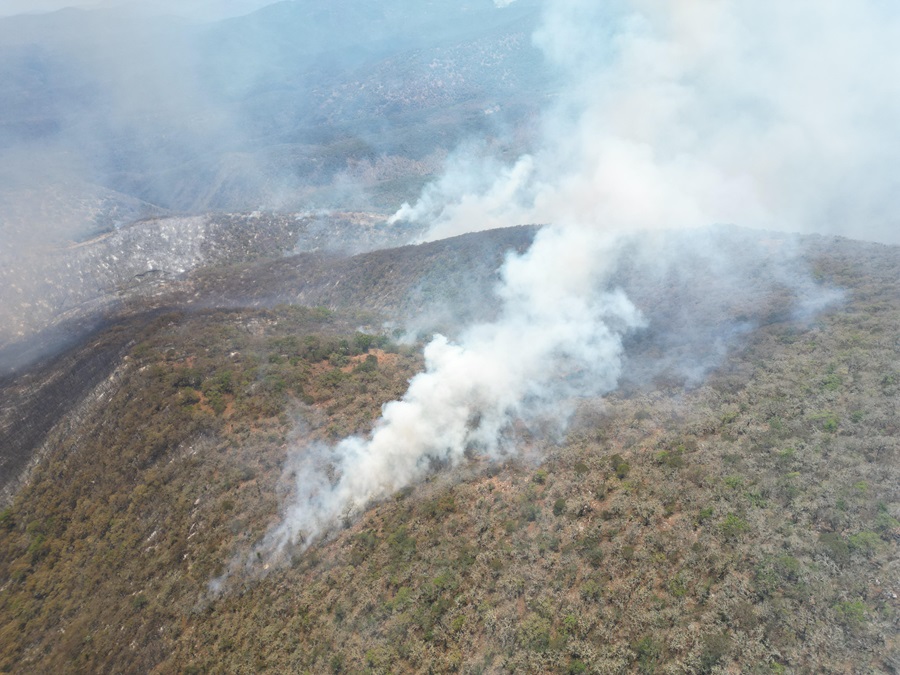 Cabe mencionar que este martes, arribó un equipo aéreo del Gobierno del Estado con el que se han realizado sobrevuelos de reconocimiento y evaluación; así como la movilización de 46 personas combatientes y voluntarias y el ingreso de víveres en dos puntos de este incidente.