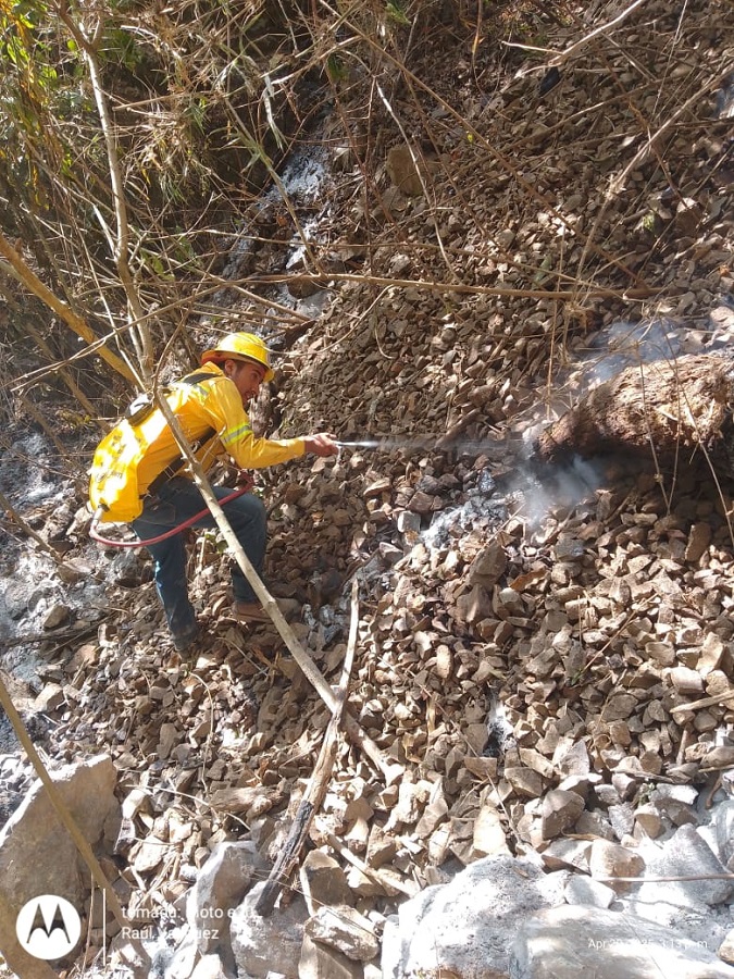 Las actividades de combate, control y liquidación de la conflagración se llevaron a cabo por personal técnico y el apoyo de equipo especializado de manejo de agua, quienes se coordinaron con autoridades municipales y personas comuneras.
