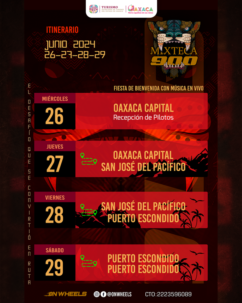 - La Sectur Oaxaca y el moto #club On #Wheels suman esfuerzos para recibir a alrededor de 250 participantes que recorrerán la ruta ciudad de Oaxaca-Puerto Escondido