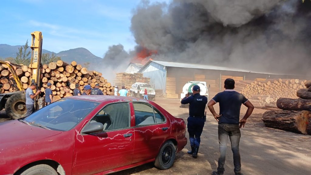 Trabajan para sofocar incendio en aserradero de San Miguel Etla