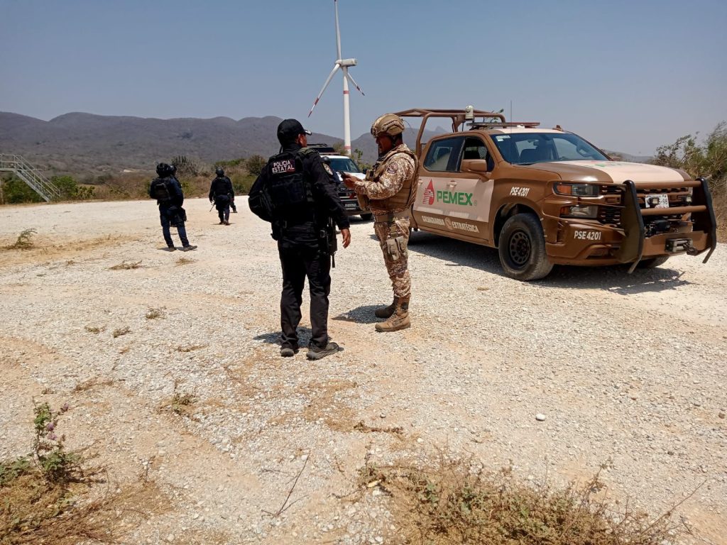 Oaxaca de Juárez, Oax., 17 de abril de 2025.- La Policía Estatal en coordinación con personal de Seguridad Física de Petróleos Mexicanos (#Pemex), realizó recorridos de seguridad y vigilancia en el municipio de Asunción Ixtaltepec, donde se inspeccionaron nueve puntos específicos.