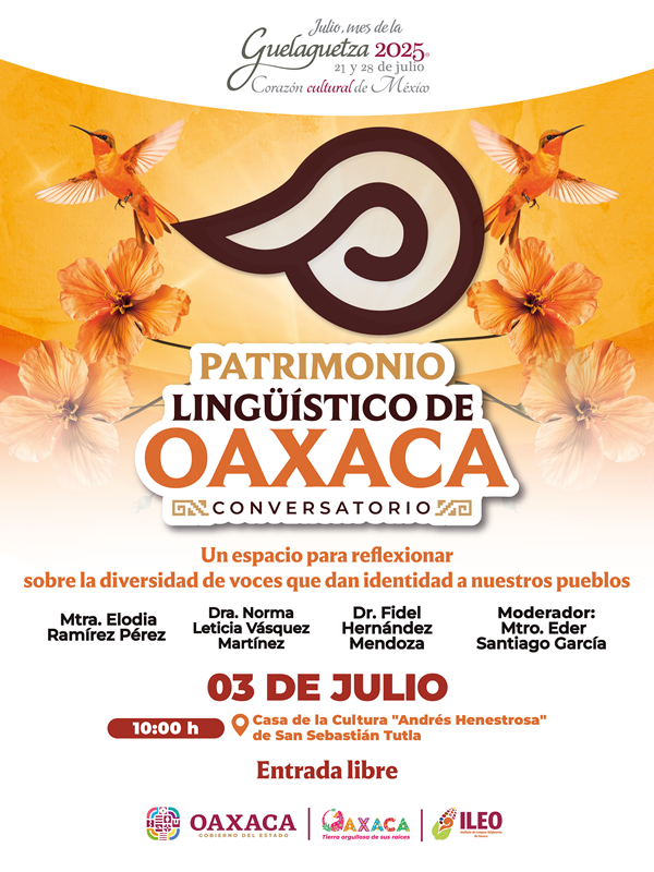 De esta manera, expresó que en colaboración con el Ayuntamiento de San Sebastián Tutla, el jueves 3 de julio se realizará el Conversatorio Patrimonio Lingüístico de Oaxaca, en la Casa de la Cultura “Andrés Henestrosa”.
