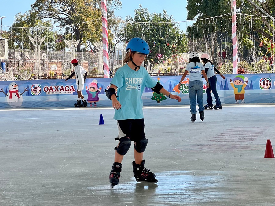 Oaxaca de Juárez, Oax., 9 de diciembre de 2024.- El Sistema para el Desarrollo Integral de la Familia (DIF) Oaxaca informa que la pista de hielo instalada en el Festival Navideño del Parque Primavera Oaxaqueña Cho Ndobá está abierta al público en un horario de 12:00 a 22:00 horas.